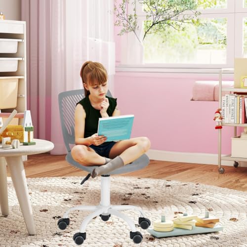 Furniture skrivbordsstol för barn, justerbar höjd svängbar stol med litet hål ryggstöd, lämplig för barnens sovrum eller studierum, grå