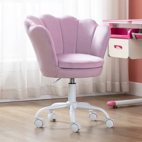 chairus barn skrivbordsstol höjdjusterbar, snurrstol i sammet blomblad bekväm kontorsstol för flickor barn, lila