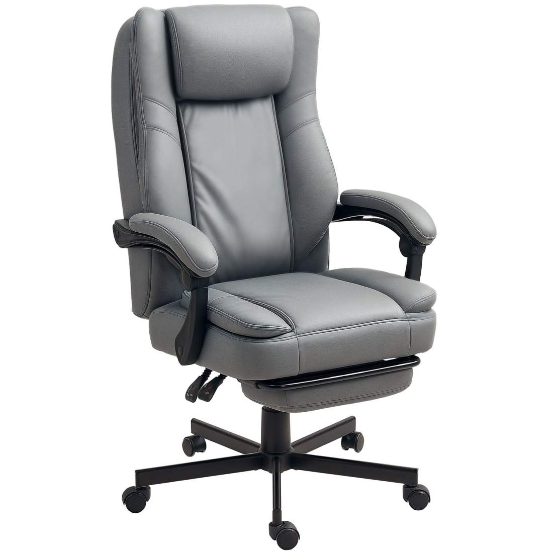 Kontorsstol med massagefunktion, höj- och sänkbar skrivbordsstol med fällbart ryggstöd, klädd, på hjul, grå