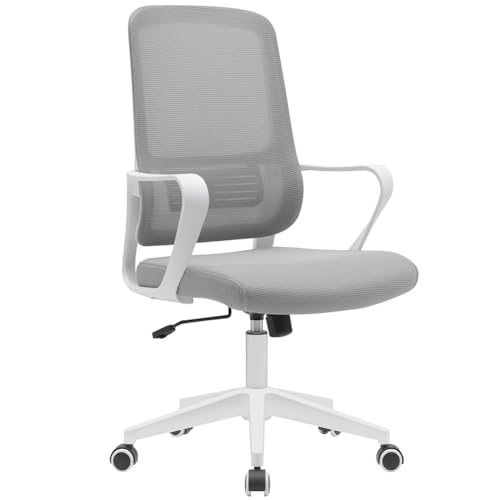 BAKAJI Ergonomisk skrivbordsstol med reptåliga snurrhjul, andningsbart tygryggstöd och ländryggsstöd, studiestolstol för kontor med gashöjdjustering 98–108 cm (grå och vit)