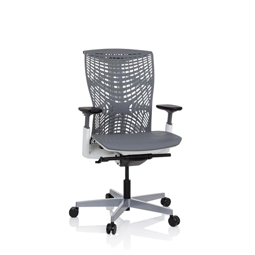 hjh OFFICE 640511 Professionell kontorsstol SKOPE TPE grå/vit ergonomisk skrivbordsstol, flexibelt ryggstöd, justerbart sittdjup och armstöd