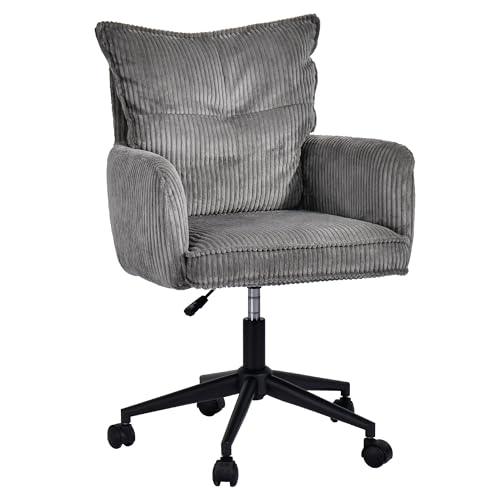 Duhome Kontorsstol skrivbordsstol av manchester, snurrstol toalettbord stol justerbar höjd datorstol, grå