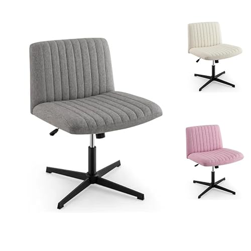 Korsbent stol utan armstöd snurrstol med bred sits skrivbordsstol grå