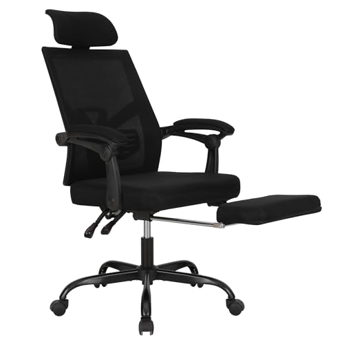 UEV Kontorsstol ergonomisk, snurrstol, skrivbordsstol med justerbart nackstöd ländryggsstöd fotstöd, justerbar höjd lutbar, upp till 136 kg, ventilerande tyg, svart