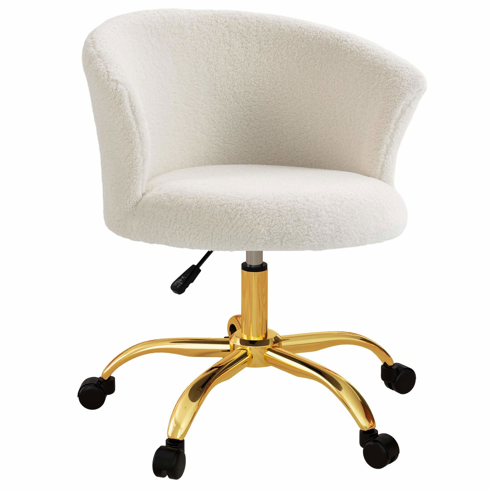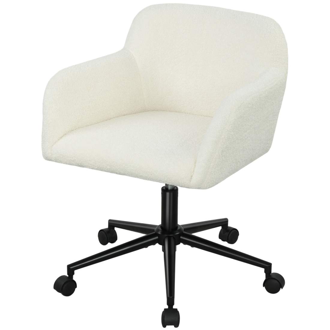Justerbar skrivbordsstol – Vit teddyfleece, bekvämt stöd