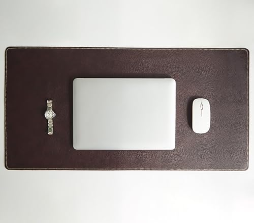 Skrivbordsunderlägg i äkta läder, stor kontorsmusmatta, slät skrivyta, halkfri bas, slitstarkt och elegant arbetsområdestillbehör(DarkBrown, 100 x 50 cm)
