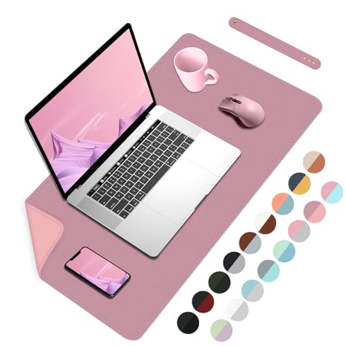 Aothia skrivbordsunderlägg, PU-läder skrivbordsmatta, musmatta, halkfritt skrivbordsskydd, vattentät skrivbordsunderlägg för kontor och hem (91x43cm,Mörkrosa)