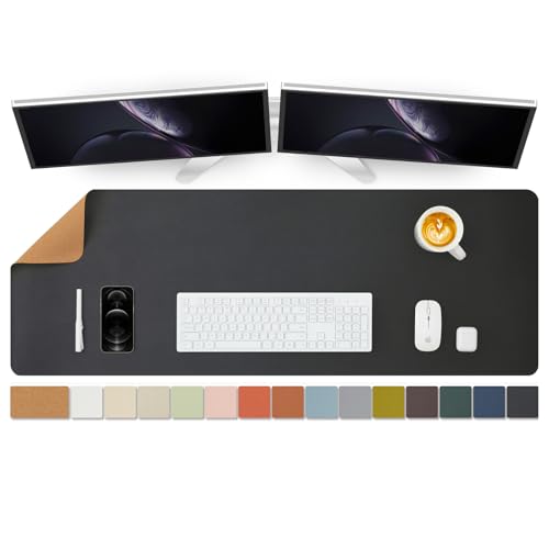 Knodel Skrivbordsdyna, kontorsskrivbordsmatta, PU-läder, skrivbordsunderlägg, skrivbordsmatta, vattentät skrivbordsdyna för kontor och hem, dubbelsidig, 40 x 80 cm (svart)
