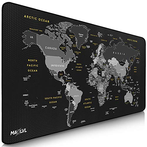 Sidorenko XXL spelmusmatta stor – 900 x 400 mm – fransfria kanter – halkfri – XXL musmatta – skrivbordsunderlägg – speciell yta förbättrar hastigheten – MAXLVL – svart