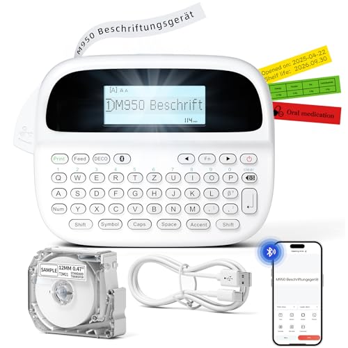 Goknu Självhäftande märkningsmaskin, Bluetooth-etikettmaskin, QWERTZ-tangentbord, M950 etikettskrivare, skrivmaskin för kontor och hemmakontor