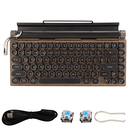 Trådlöst Retro Skrivmaskin Tangentbord Bluetooth Klassisk Vintage Blå Axis Färgat Ljus Riktigt Mekaniskt Tangentbord med 83 Tangenter Punk Keycap för Mac/PC/Bärbar Dator/Surfplatta/Mobiltelefon