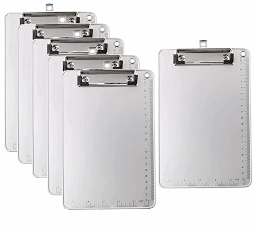 6 st A5-metallklämbräda, halkfri baksida, gummerad metallklämma, hårdfiber skrivbräda med upphängningsögla, pappershållare klämbräda, stabil chic, skrivplatta i aluminiumlegering TKD8053-A5-6x