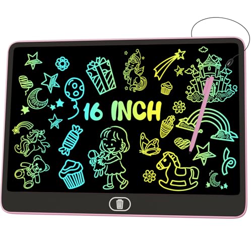 16 Tum Färgglad LCD-Skrivtavla, [Hög Ljusstyrka] Stor Ritplatta med Lås- och Raderingsfunktion, Klotterplatta med ögonskydd, Leksaker och Presenter för Barn och Vuxna i Hemmet, Skolan - Rosa