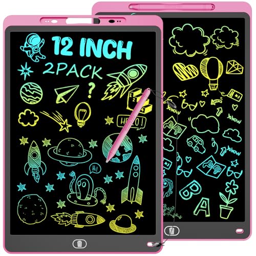 Electight 2 ST Färgglad LCD-Skrivtavla 12 Tum, Rittavla med Lås- och Raderingsfunktion, Ögonskyddande Klotterplatta, Leksaker och Gåvor för Barn och Vuxna i Hemmet, Skolan - Blå och Rosa