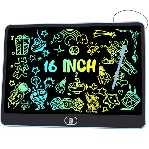 Electight Färgglad LCD-Skrivtavla, [Hög Ljusstyrka] 16 Tum Stor Ritplatta med Lås- och Raderingsfunktion, Klotterplatta med ögonskydd, Leksaker och Presenter för Barn och Vuxna i Hemmet, Skolan - Blå