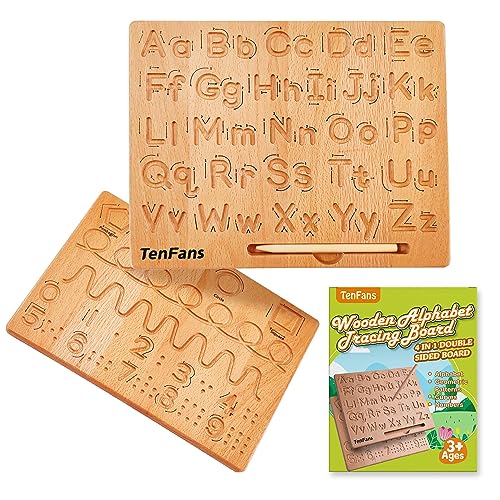 TanFans trä alfabet skrivtavla – Montessori pedagogisk leksak för förskolebarn – främja finmotorik – ABC skrivande inlärning – dubbelsidigt övningsverktyg – gåva för 1–4 år gamla barn