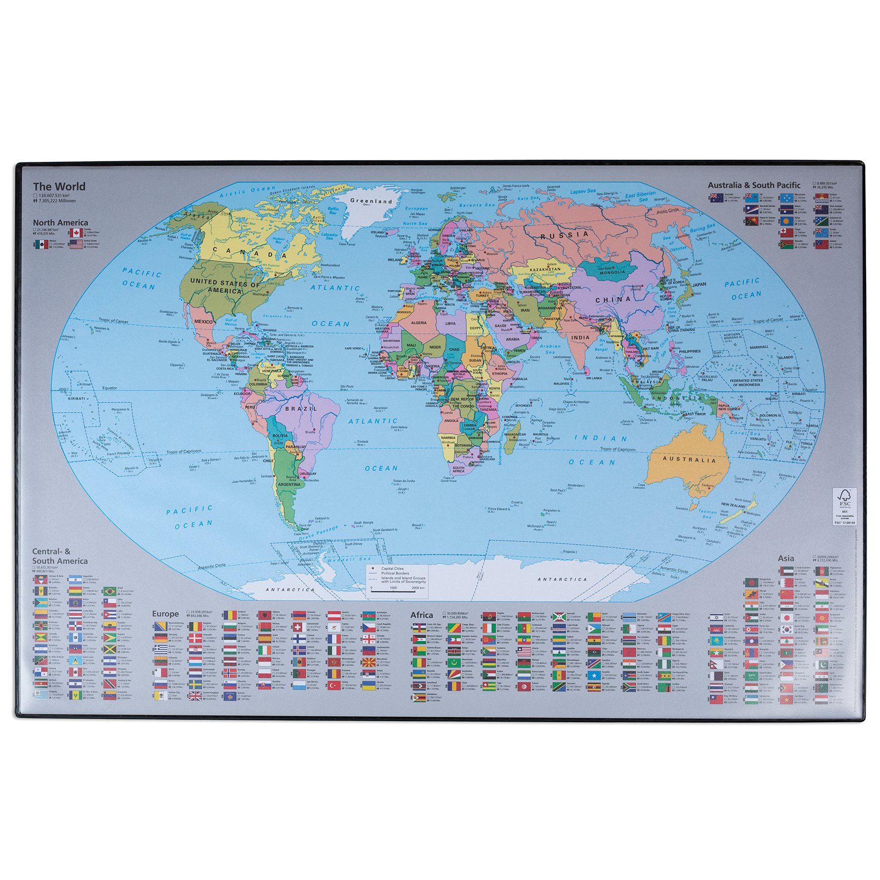 Skrivunderlägg Kangaro världskarta halkfri 38 x 58 cm med två fickor för barn, ungdomar och arbetsrum, K-0014W501