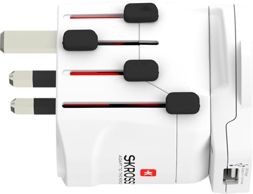 SKROSS World Adapter - World to UK USB-C™ PD för alla jordade och ojordade enheter (2- och 3-poliga), med integrerad, ultrasnabb USB-C™-laddare (Power Delivery)