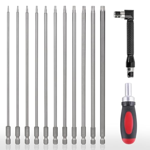 CPROSP 11 st 200 mm Torx bits med 2 x skruvmejsel, T6, T7, T8, T9, T10, T15, T20, T25, T27, T30, T40, S2, stjärnhuvud