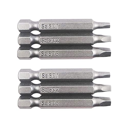 Fongmore 6 st 1/4 tum skaftlängd långt magnetiskt fyrkantigt huvud skruvmejsel bits set elverktyg SQ1 SQ2 SQ3 (50 mm)