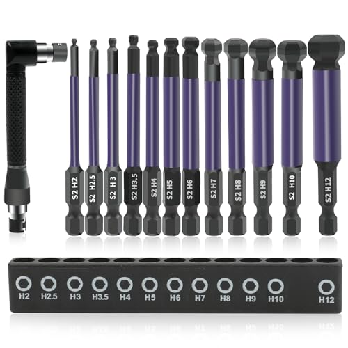 WIYETY 12 stycken kulhuvud sexkant skruvmejsel: insexnyckelsats, bitsats med starkt magnethuvud, fosfid svart slagskruvdragare bits, bollände hex skruvmejsel