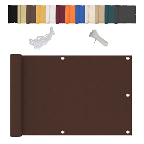 Balkongbeklädnad 100 x 1 000 cm, staketnät, väderbeständig, rektangel, skuggnät med rep, för balkong, trädgård, uteplats, veranda, trädgård – brun