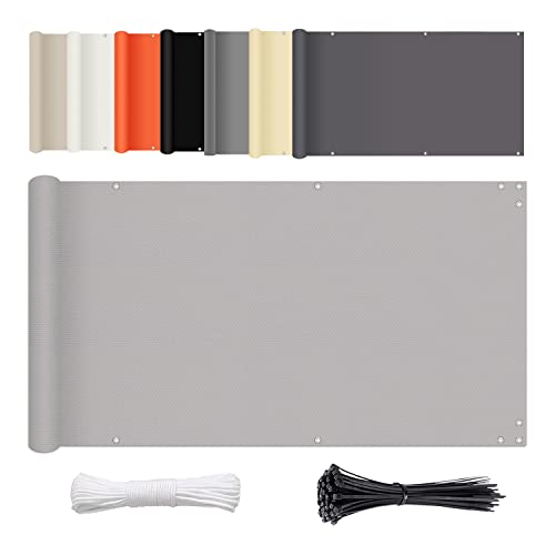 ELINHGO 150 x 350 cm 150 x 350 cm, Skuggnät, väderbeständig, med Nylon rep och buntband, för Balkongskydd räcke - Ljusgrå