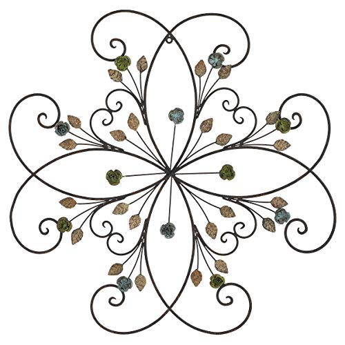 Lechesis blomma och blad metall rulle väggkonst dekor, handgjord stor rustik blommig rulle smidesjärn vägg hängande konst skulpturer dekorativ, 61 cm x 61 cm