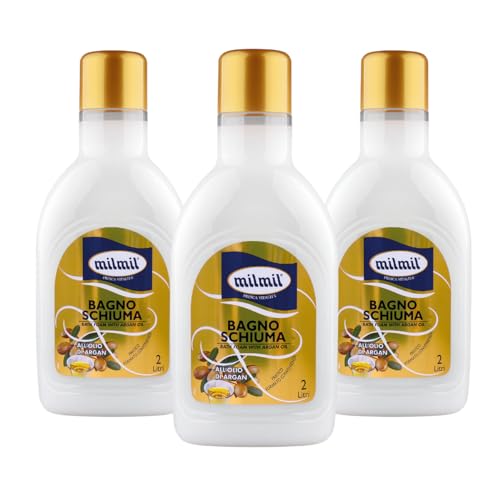 Milmil Skumbad, doft arganolja, praktisk bekväm storlek, dermatologiskt testad - 3 x 2 000 ml