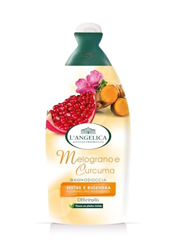 L'Angelica Officinalis skumbad med granatäpple och gurkmeja, näringsrikt, regenererande duschrum, duschkräm utan parabener eller silikon, 12 förpackningar med 500 ml