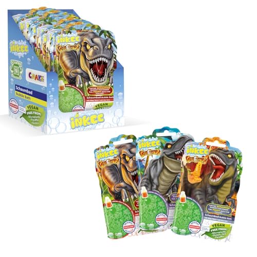 INKEE – Bubble Bath Liquid Dinorex | Dinosaurie badtillsats för barn, grönt skumbad barn med aloe vera & Colagummiarom, 15 x 40 g