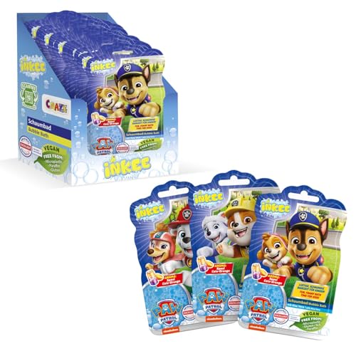 INKEE – Bubble Bath Liquid Paw Patrol, badtillbehör för barn, blå Paw Patrol, skumbad barn med aloe vera & speci Cola-Orange arom, 15 x 40 g