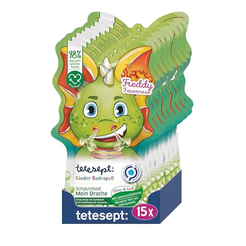 tetesept barn badnöje skumbad min drake med fruktig äppeldoft och närande hudrecept – drakstarkt badskum och grönt vatten – 15 x 40 ml
