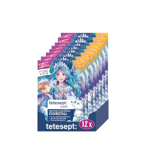 tetesept Kids sprakande skumbad iskristall 45 ml – barnbad med glitter badskum och sprakande effekt – delikat blommigt doftande badtillsats färgar vattnet isblått