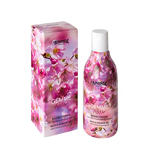 L'AMANDE – duschgel för kvinnor med toner av lavendel och bergamott, duschgel rengöringsgel och fuktgivande, mild och naturlig kropp, avslappnings- och stressminskning skumbad – rött