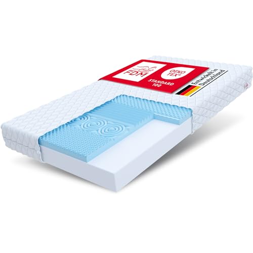 FDM Comfort Plus skummadrass 160 x 200 cm, höjd 10 cm, 7-liggzoner, madrass, skumgummi, H3, Öko-Tex för allergiker, tvättbart avtagbart vitt