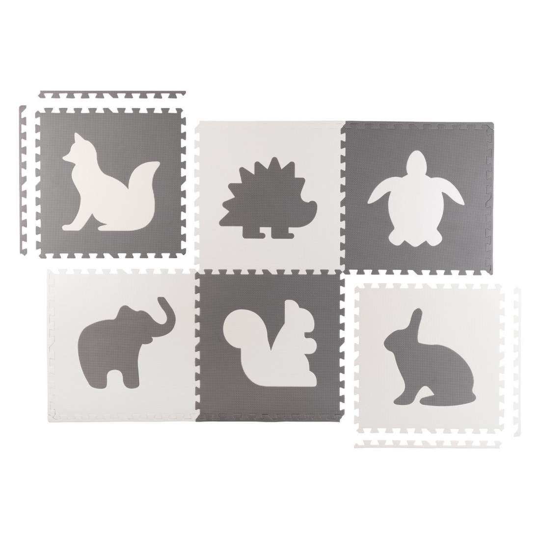 Stor skummatta, pussel, djurmotiv i vitt och grått, 6 st