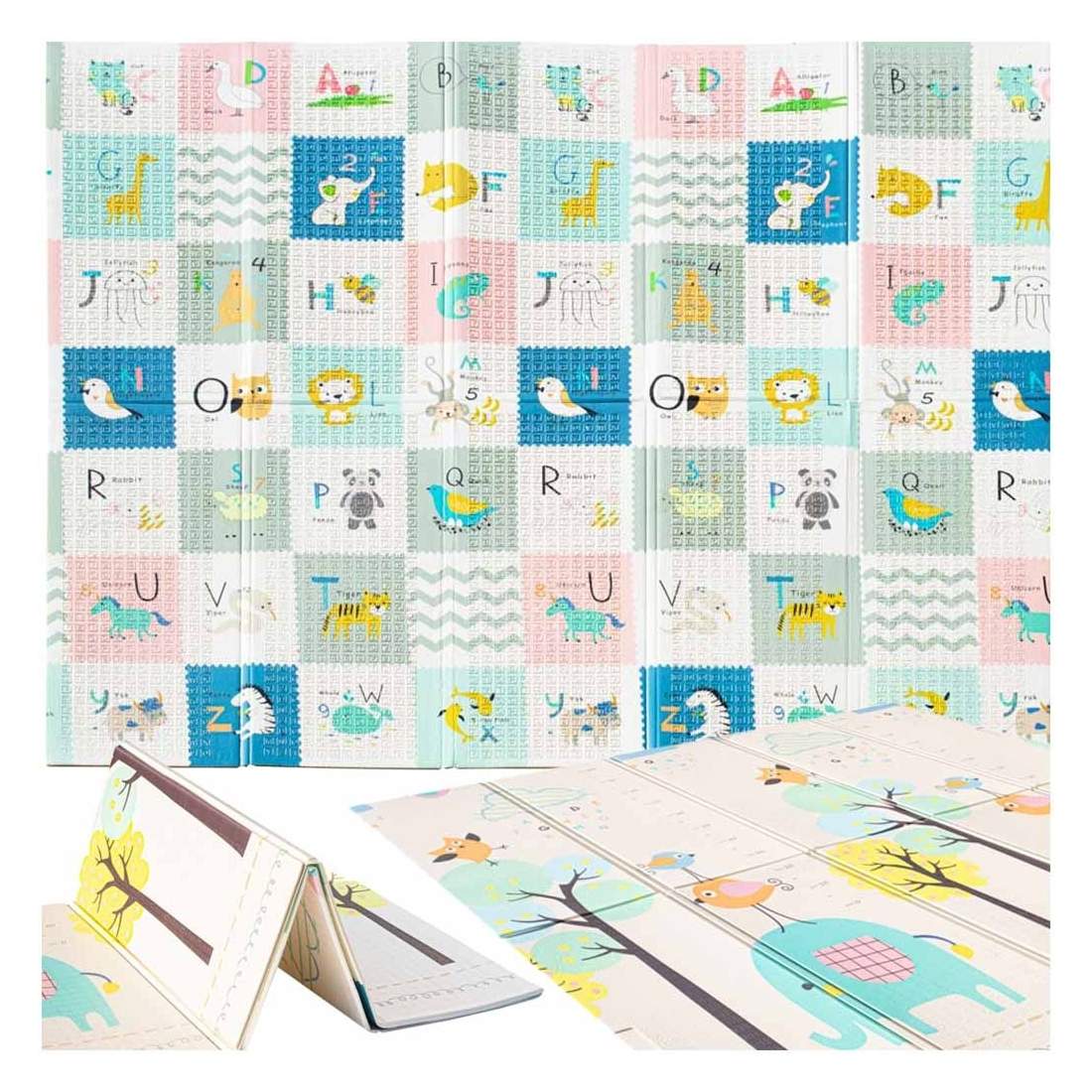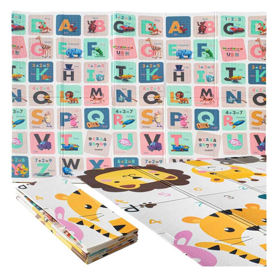 Pedagogisk dubbelsidig vikbar skummatta 180 x 200 djur/alfabet