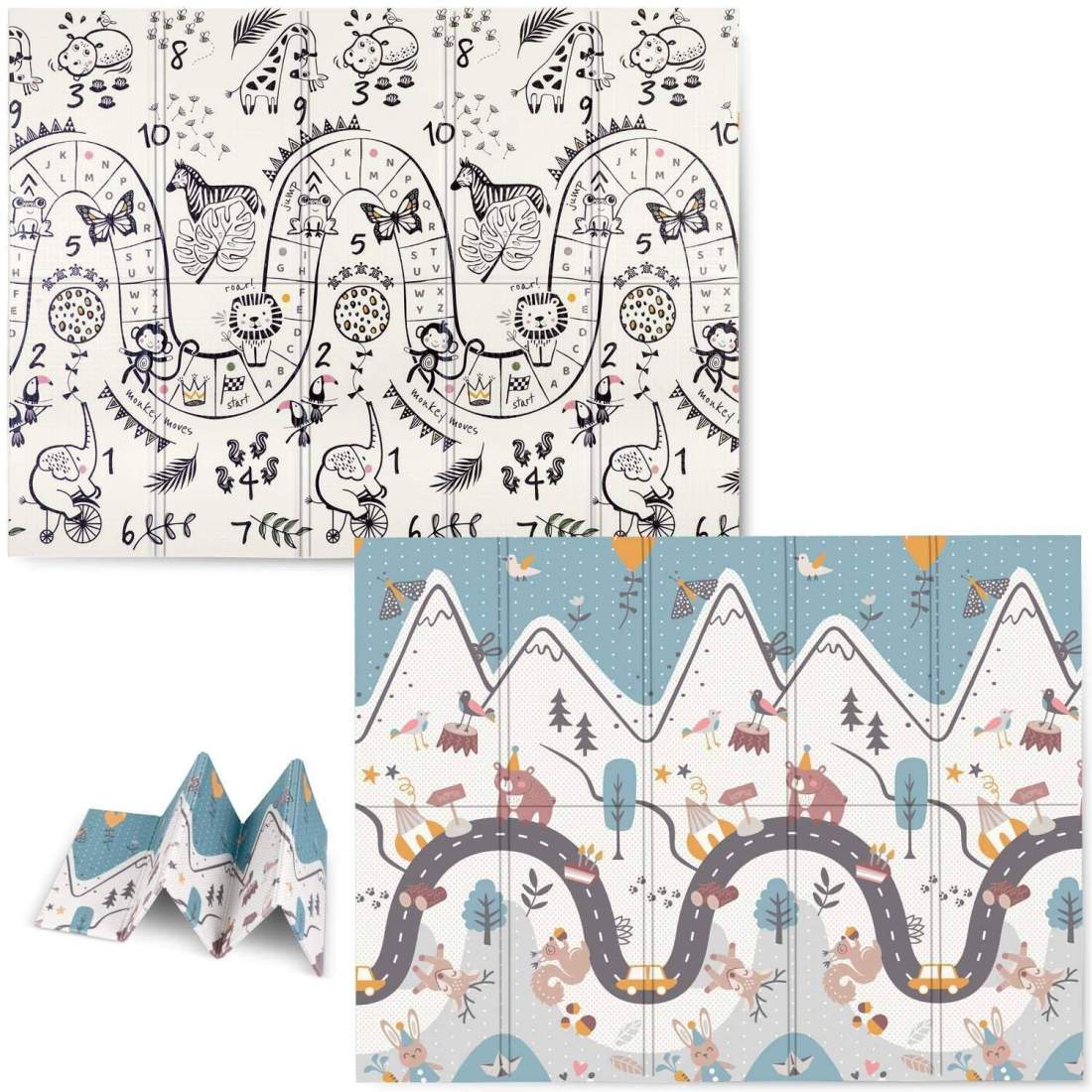 NUKIDO Baby skummatta dubbelsidig söt färgglad design för lek krypande perfekt som en gåva rullbar tjocklek 1 cm storlek 200 x 150 cm NK-341