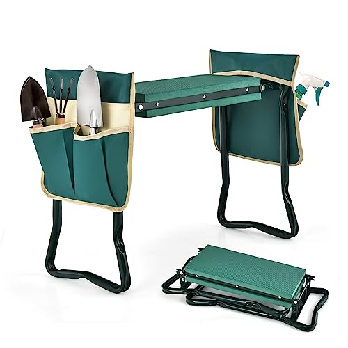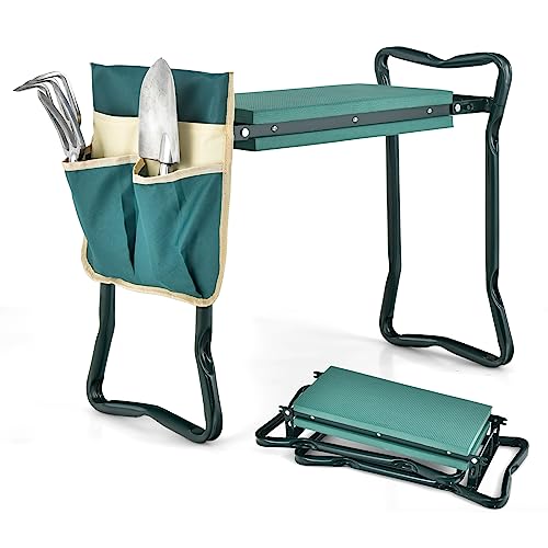 KOMFOTTEU Knäbänk, vikbar trädgårdspall med skummatta och 2 verktygspåsar, trädgårdsbänk för knäskydd, 58 cm x 28 cm x 13/49 cm, för trädgårdsarbete (med 4 stora verktygsväskor)