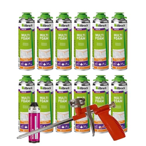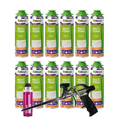 FM220 monteringsskum, pistolskum, multiskum, fönsterskum, hög ljudisolering, värmeisolering, 500 ml kombinationsset (med rengöringsmedel AA290 + skumpistol kompakt, 12 x 500 ml)