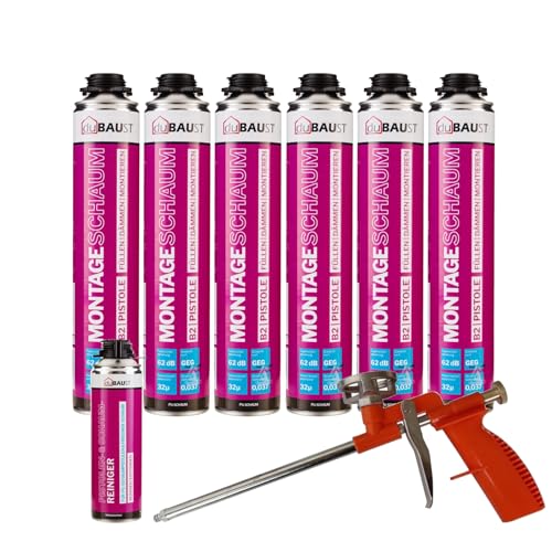 dubaust MSP24 monteringsskum, pistolskum, 750 ml, kombiset, PU fyllningsskum, isoleringsskum, hög ljudisolering, värmeisolerande B2 (med rengöring PRS24 500 ml skumpistol kompakt, 6 x 750 ml)