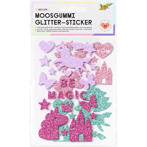 folia 23788 - glitter enhörning skumplast klistermärken blandade i 4 olika färger 37 delar för dekoration och utsmyckning