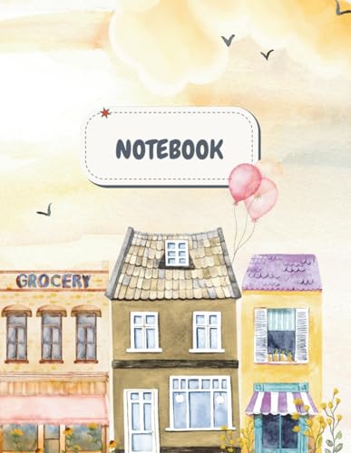"City of Dreams Notebook" by Deejas Pages: Colorful Buildings & Balloons Aesthetic Journal – Whimsical Evening Sky Composition Notebook for Students & Dreamers, 8.5" x 11", 120 Pages