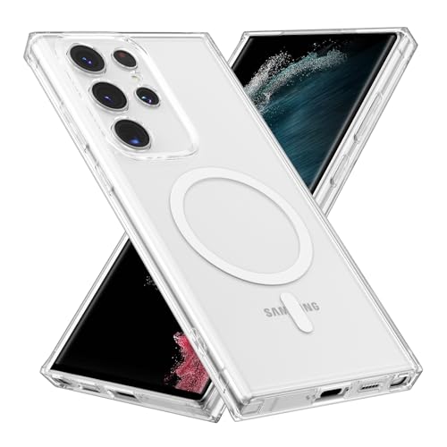 RALEAVO för Samsung Galaxy S22 Ultra 5G fodral, magnetiskt kristallklart fodral kompatibelt med MagSafe, stöttåligt skydd i militärkvalitet stötfångare telefonfodral för Samsung S22 Ultra, klart