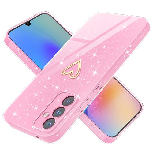 Yichxu Mobiltelefonfodral för Samsung Galaxy A05s fodral glitter hjärta kärlek silikon TPU stötsäkert skydd stötfångare fodral glänsande ultratunt reptåligt skyddsfodral för Samsung A05s, rosa