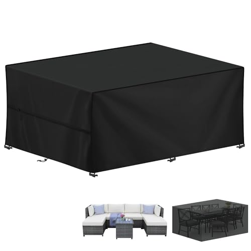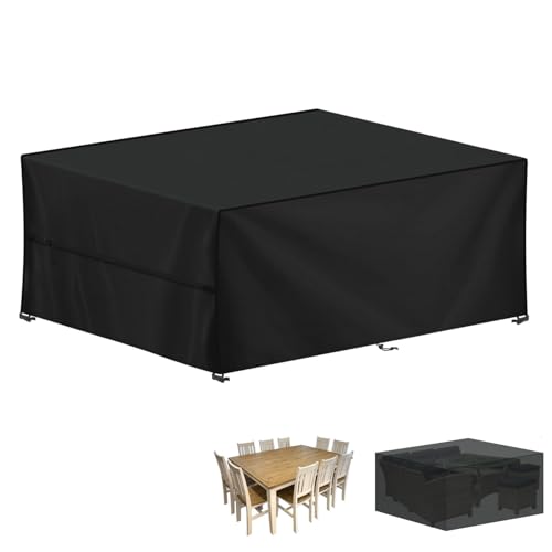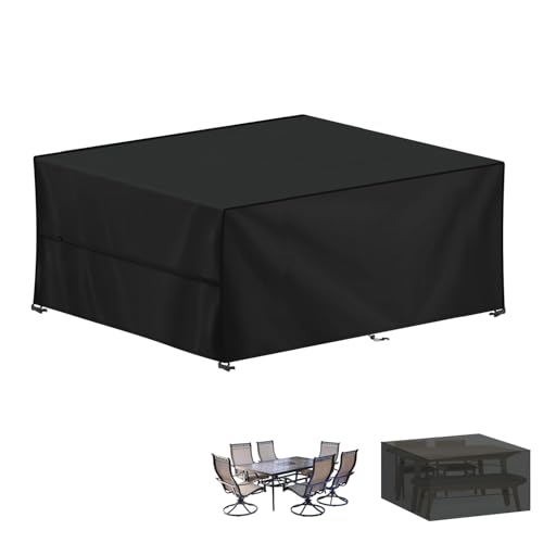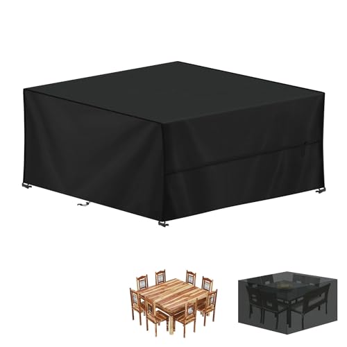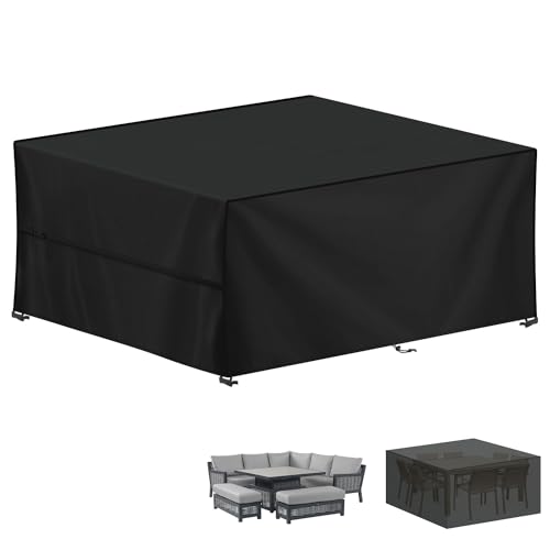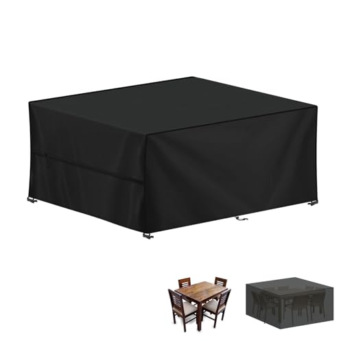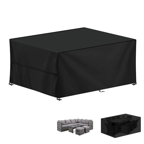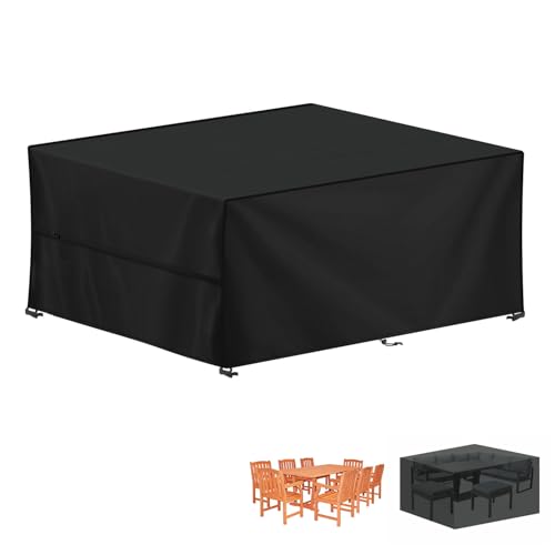 YoungBee Överdrag för trädgårdsmöbler, rektangulärt/fyrkantigt skydd, vattentätt, anti-UV, uppgraderat, rivbeständigt 420D-oxfordtyg, möbelöverdrag för rotting, utemöbler, 250 x 250 x 90 cm