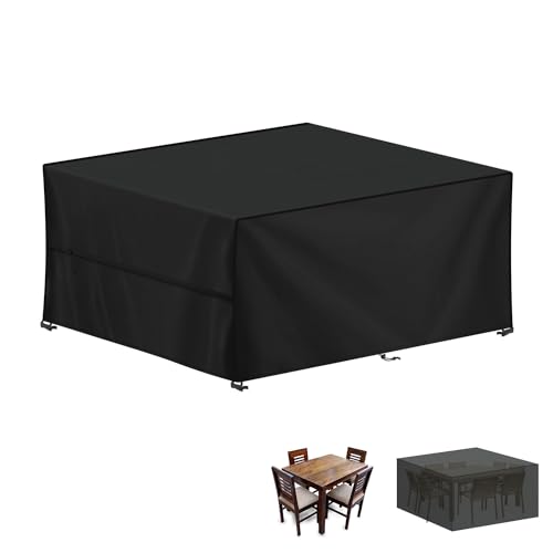 LAMUNI Möbelöverdrag för Trädgård Vattentät Överdrag för Utemöbler, Skydd för Trädgårdsmöbler, Överdrag för Trädgårdsbord, 420D Oxfordtyg Skyddsöverdrag för Trädgårdsbord, 220x220x85cm