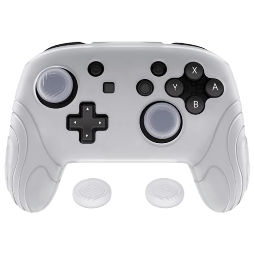 PlayVital Samurai Edition Ergonomiskt skyddsfodral i silikon för Nintendo Switch Pro-kontroll, mjukt halkfritt kontrollgrepp skydd för Switch Pro med tumgreppsskydd – klarvit