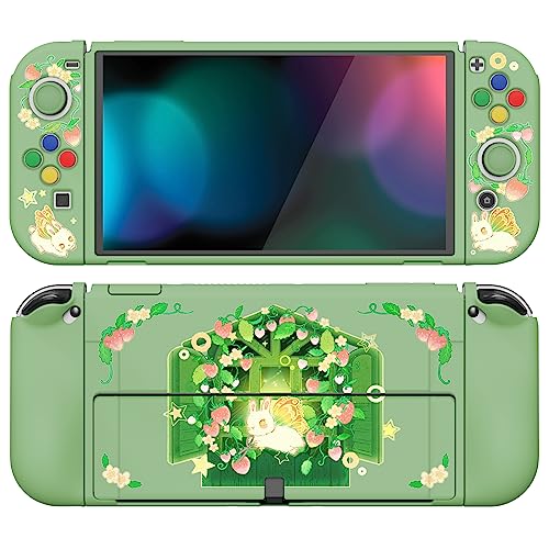 PlayVital ZealProtect Mjukt skyddsfodral för Nintendo Switch OLED, flexibelt skydd Joycon greppskydd för Switch OLED med tumgreppsskydd och ABXY riktningsknapplock – jordgubbskanin